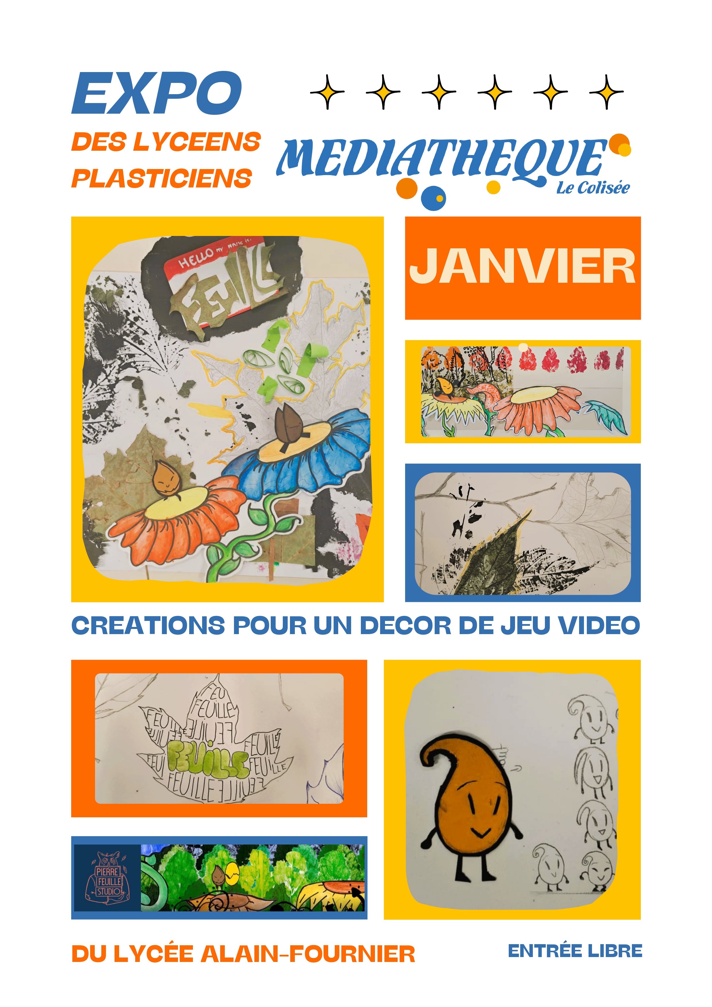 - Une exposition au lycée Alain-Fournier en salle de réunion (vernissage 8 janvier 18h30) qui regroupe les différents travaux réalisés dans les cours d'arts plastiques ce premier trimestre que nous ouvrirons aussi au public. (Expo qui restera une semaine)