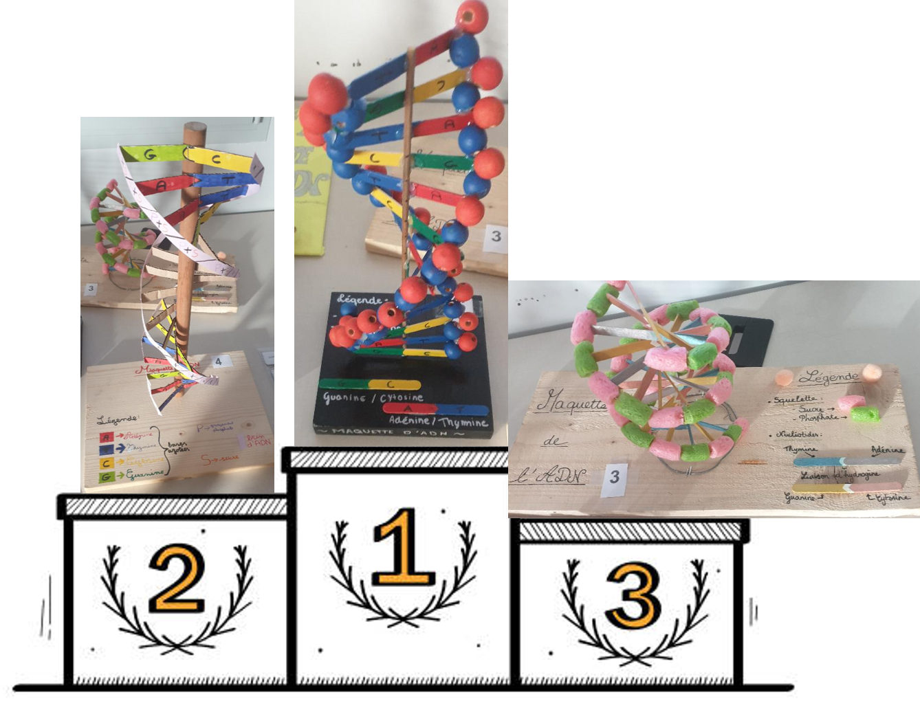 Un projet alliant science et créativité À travers ce projet, les élèves ont pu approfondir leur compréhension de la double hélice d’ADN, de ses bases azotées, et de son rôle dans la transmission de l’information génétique. Chaque maquette, unique et soigneusement conçue, reflète leur engagement et leur curiosité scientifique.