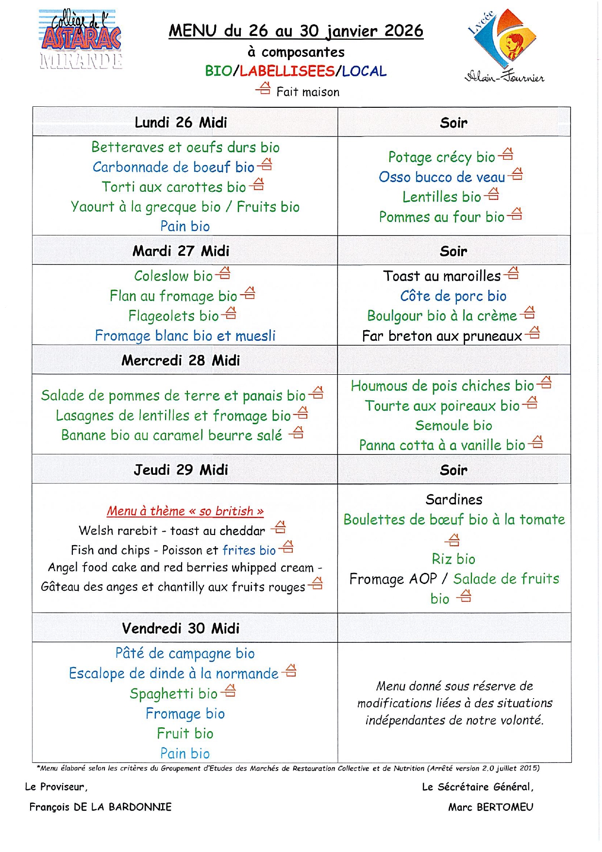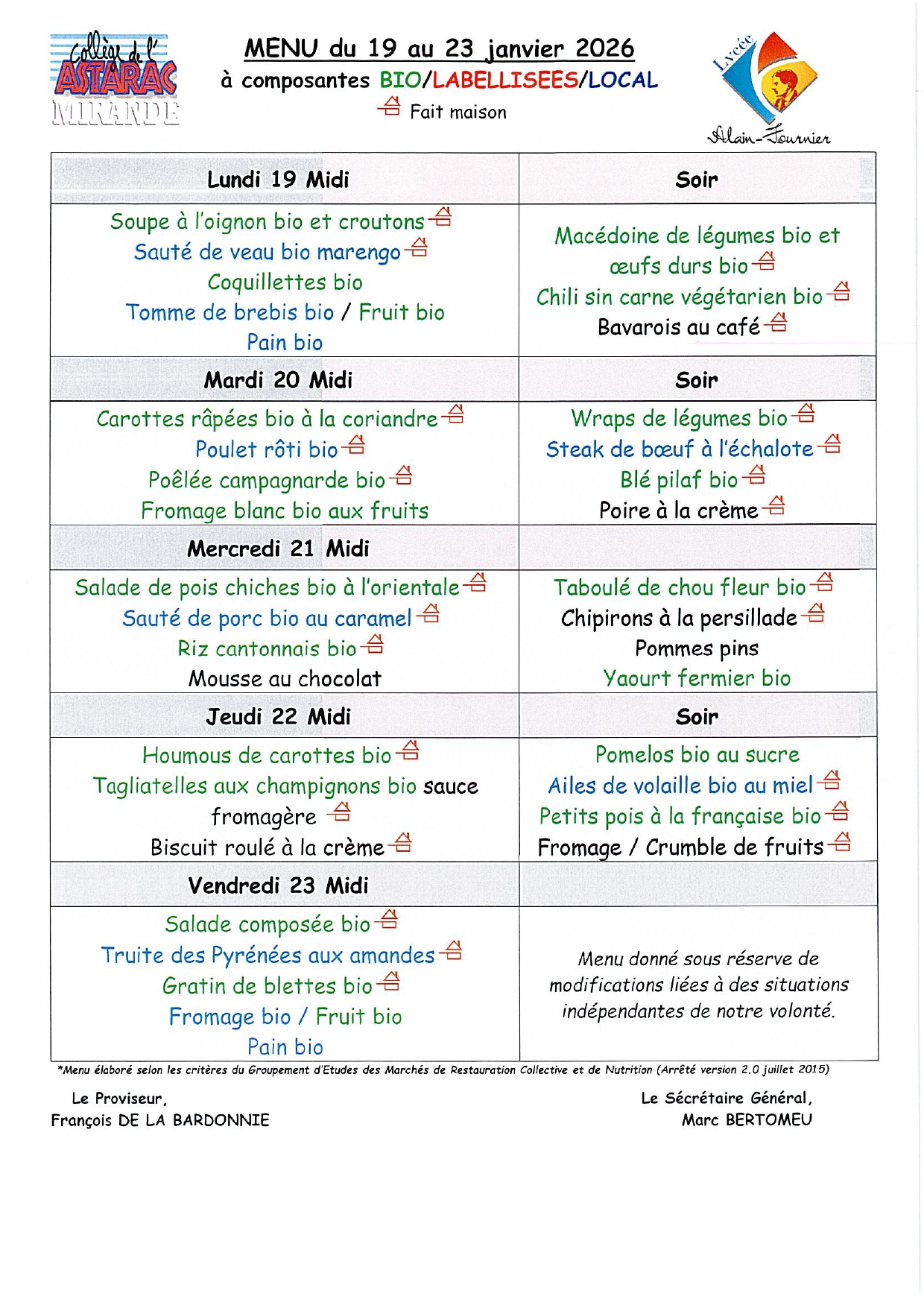 Menu de la semaine