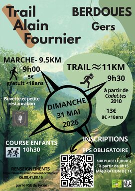 - à 9H30, un trail sur les sentiers rugueux pour les plus sportifs (voir règlement en PJ et lien vers PPS obligatoire https://pps.athle.fr/)