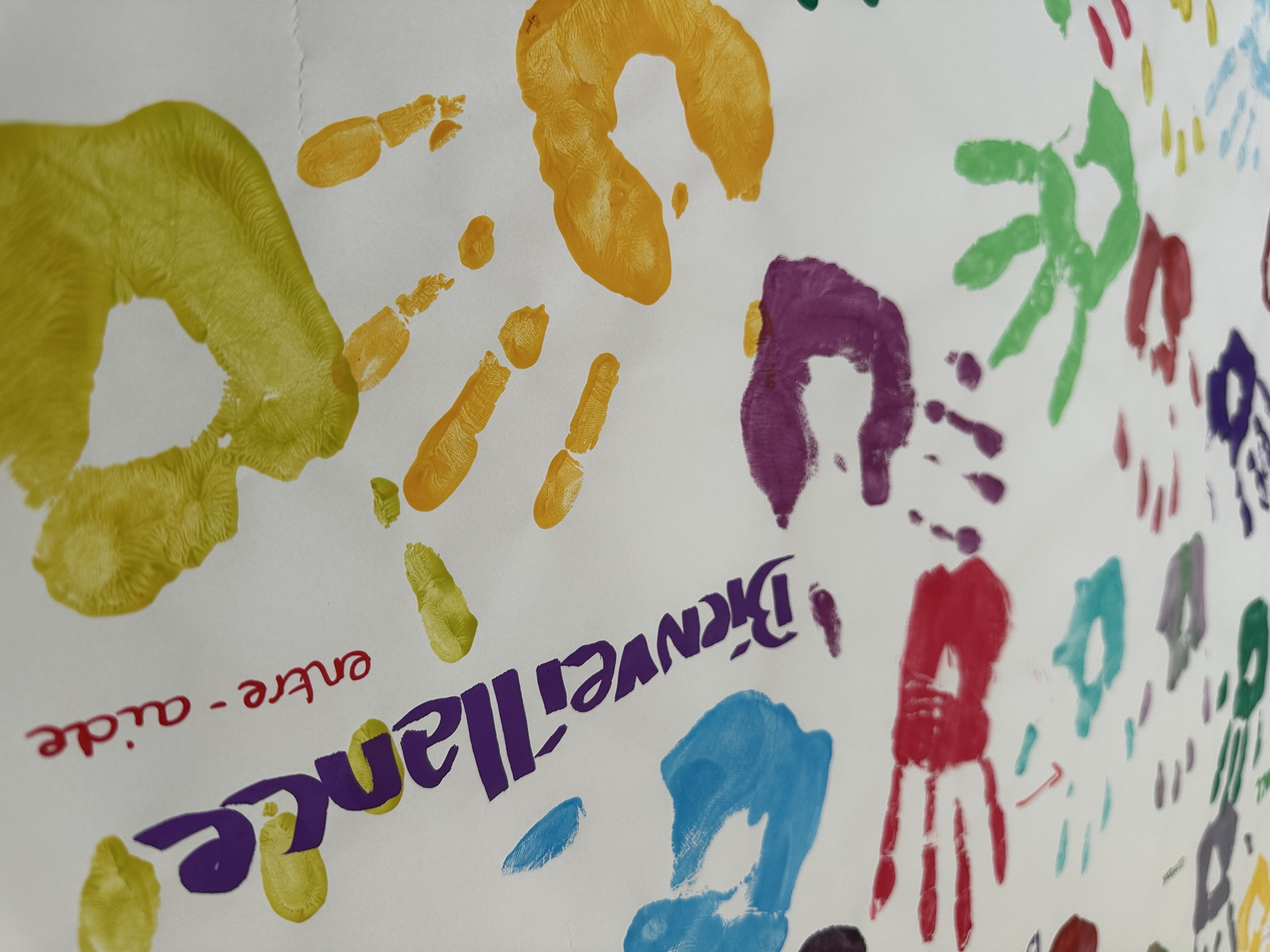 Les mains représentent les empreintes laissées par le harcèlement ou toute autre forme de violence. Les mots, eux, peuvent se révéler plus forts qu’un geste : ils peuvent apaiser, rassurer et redonner confiance. C’est ainsi le message que les élèves ont souhaité transmettre à l’ensemble de la communauté éducative.